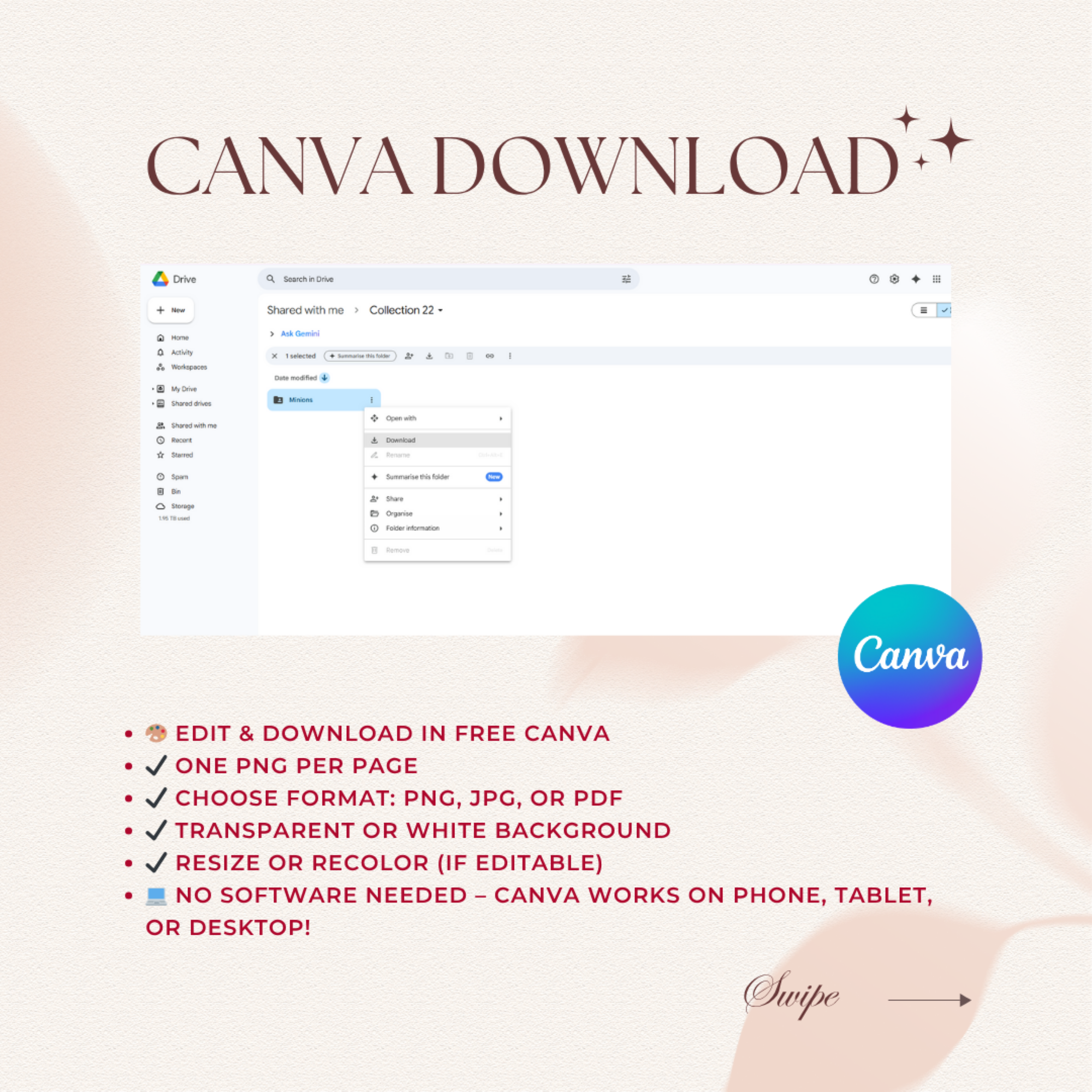 ⢠Reselling or sharing the PNG files, Canva link, or Drive link