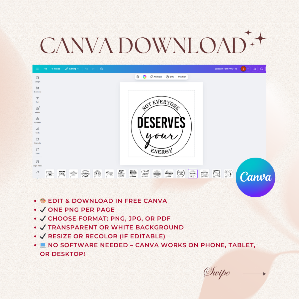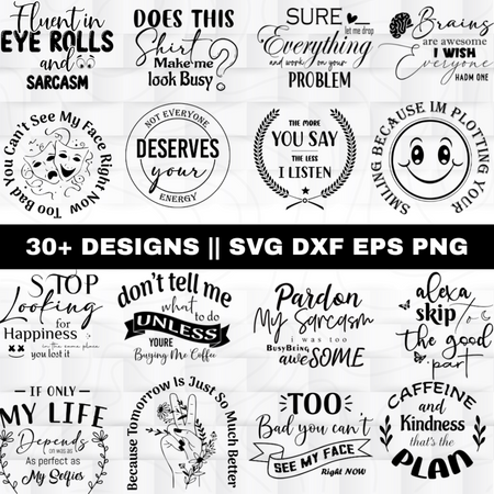 This collection is packed with over 31 bold and witty quotes, perfect for expressing your mood (with a smirk). Whether you're fluent in sarcasm or just tired of people, these designs are made to speak your mind and add a touch of humor to all your creative projects.
