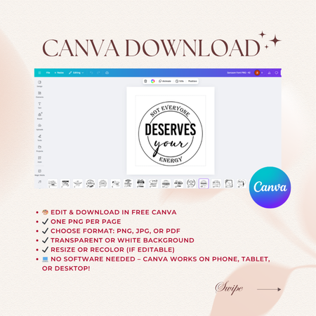• Reselling or sharing the PNG files, Canva link, or Drive link