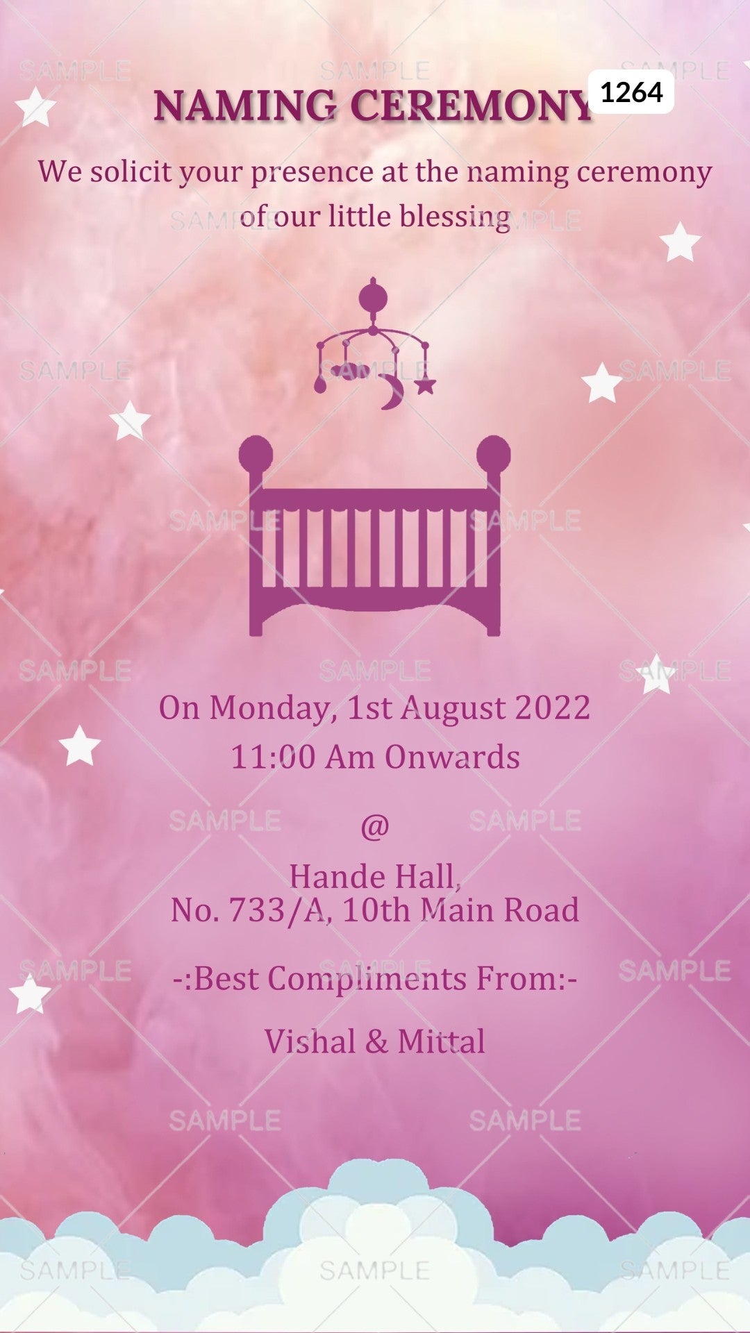 Baby Naming ceremony invitation card in english language with star, cloud, moon as minimalistic theme Canva Editable Template design 1264