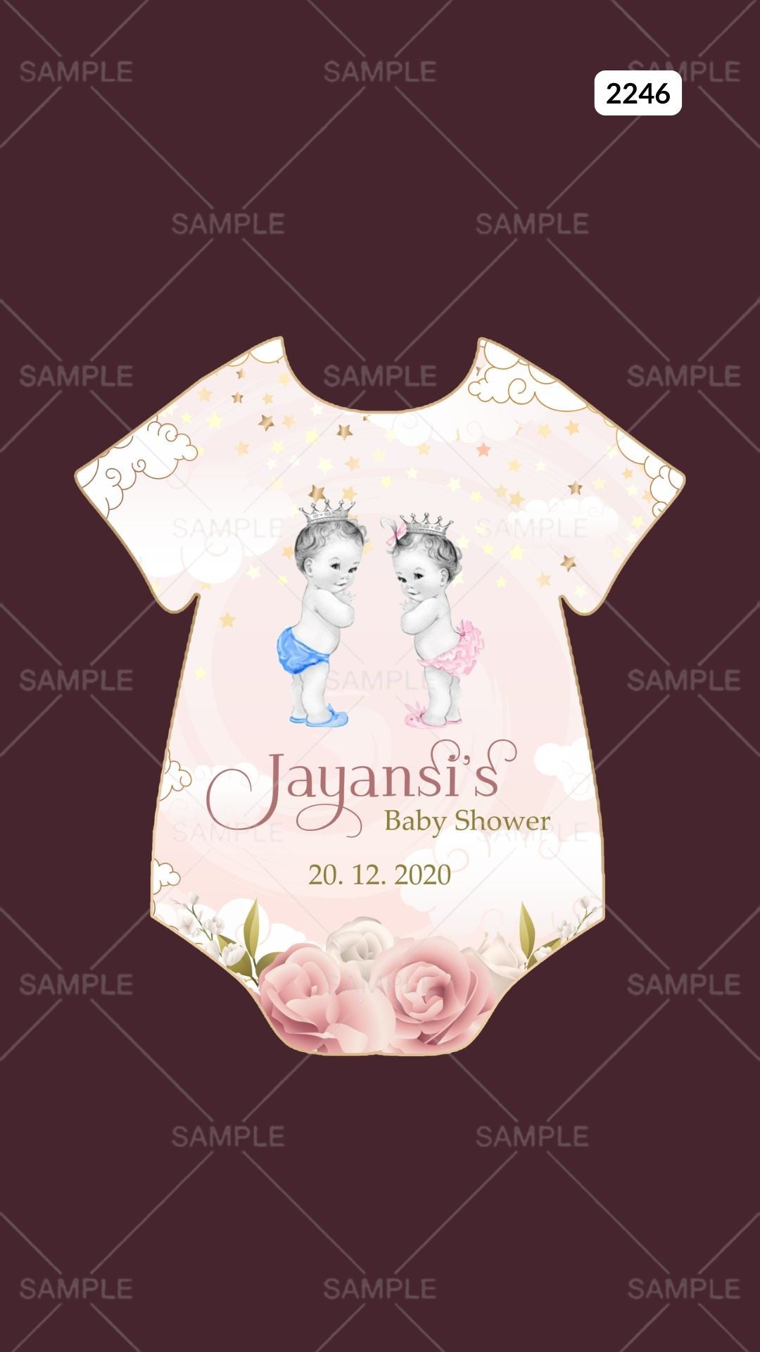 Baby Shower ceremony invitation card Canva Editable Template in english language with stars, flowers as minimalistic theme design 2246