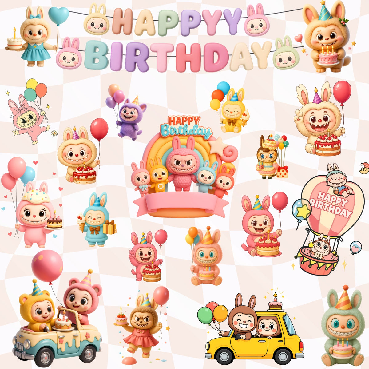Birthday Labubu Clipart Bundle | 34 PNG Sublimation Designs | Kawaii Party Graphics | Instant Download - C27