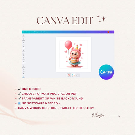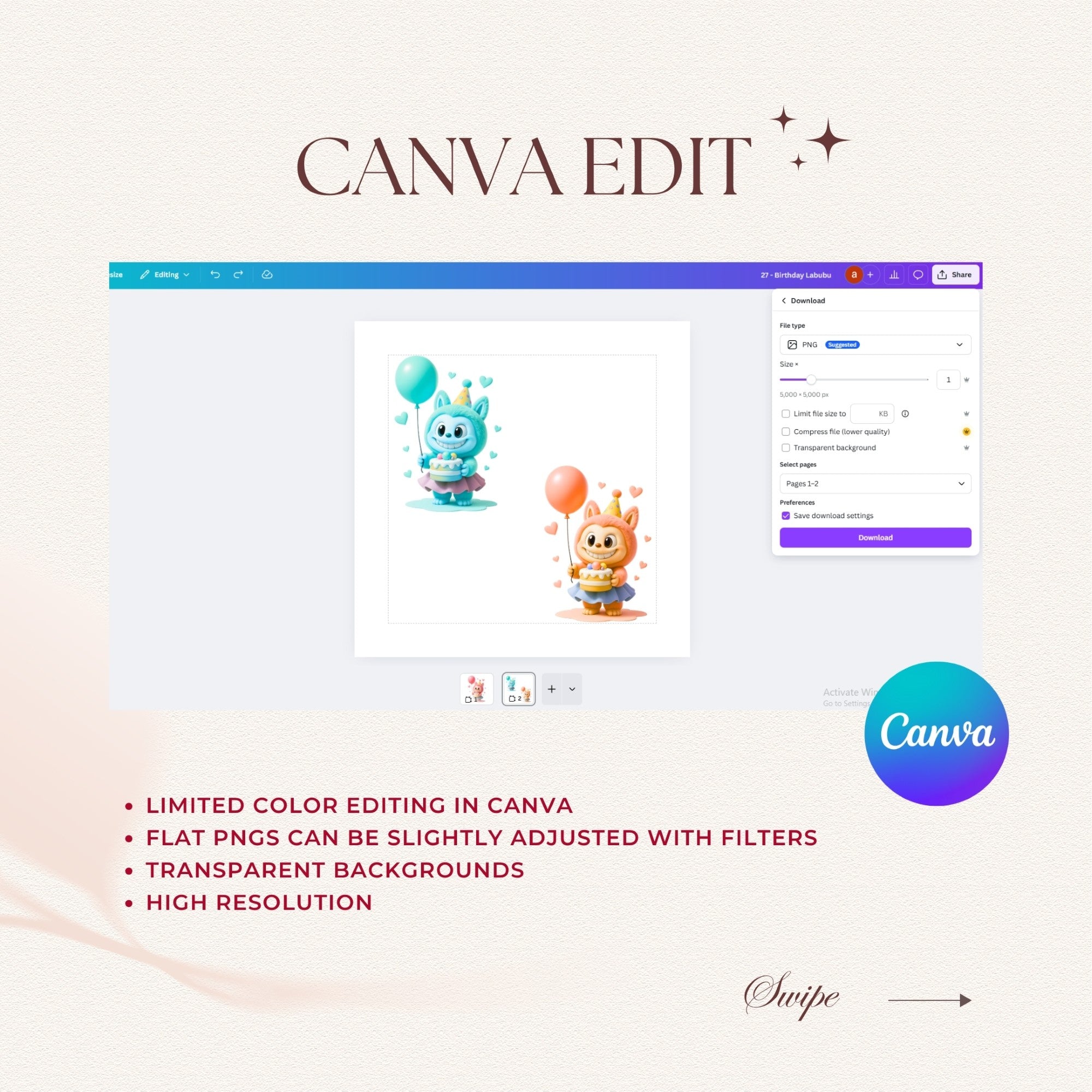 This adorable bundle is packed with 34 unique and charming Labubu designs dressed up for a celebration. Featuring birthday hats, balloons, cakes, and other festive elements, this collection is perfect for creating one-of-a-kind party invitations, gifts, and decorations that will delight any Labubu fan.