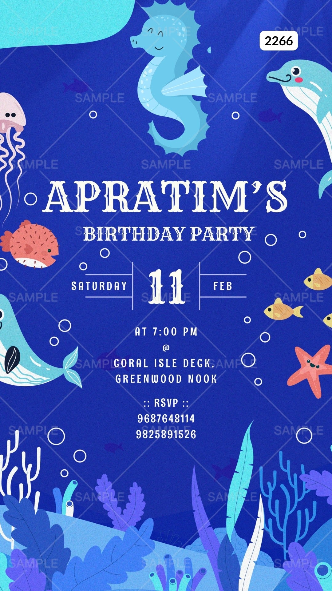 Birthday party invitation card Canva Editable Template for girl in english language with under the sea theme design 2266