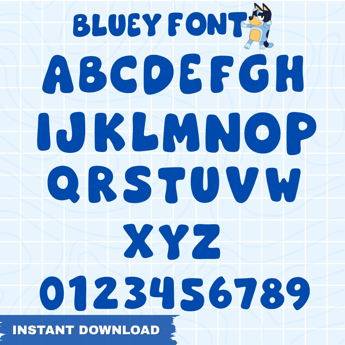 Bluey Font Alphabet & Numbers PNG | 36 Blue Dog Sublimation Designs | Kids Letters | Instant Download - C45