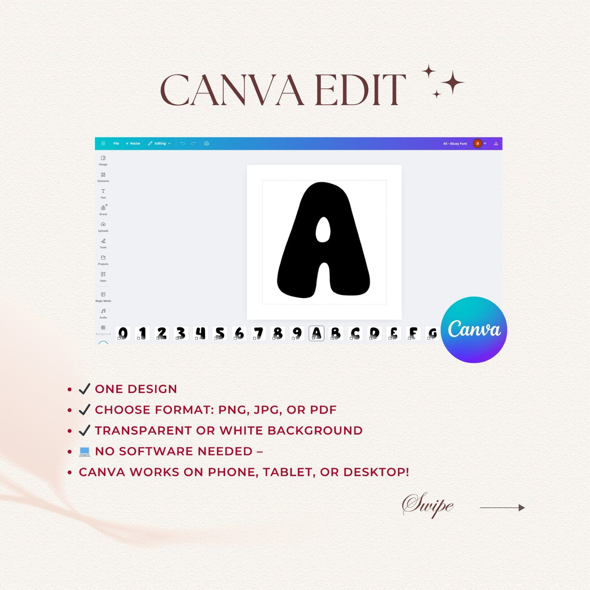 This digital collection features a full alphabet (A-Z) and numbers (0-9) in a fun, Bluey-inspired font. With 36 unique files, this bundle is a must-have for creating custom names, phrases, and age numbers for any Bluey fan.