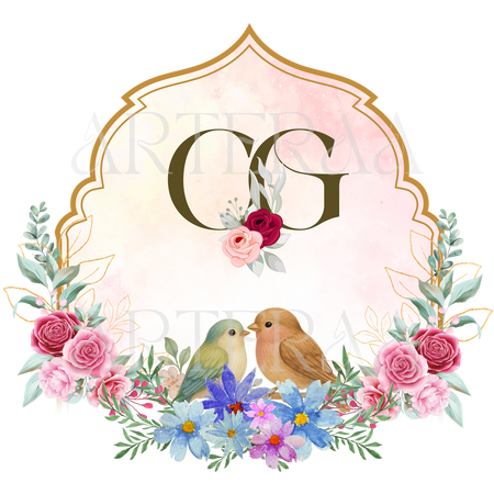 A: You will receive 5 high-resolution PNG files with transparent backgrounds featuring the selected couple initials (e.g., CG). The files are ready to use in digital or printed wedding materials.