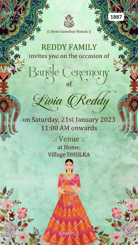 Choora ceremony invitation card Canva Editable Template in english language with traditional theme design 1887