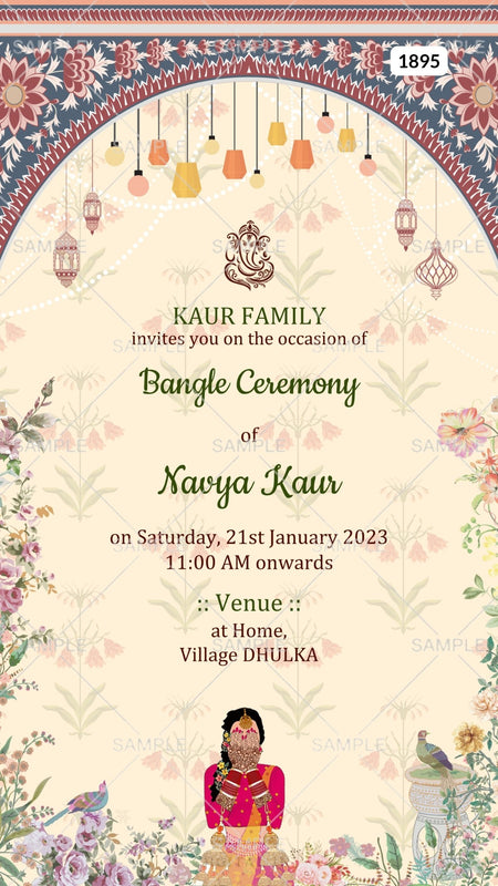 Choora ceremony invitation card Canva Editable Template in english language with traditional theme design 1895