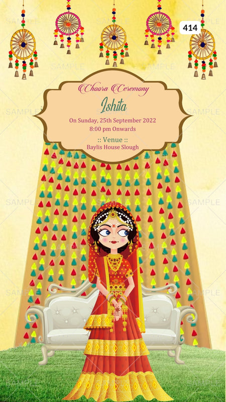 Choora ceremony invitation card Canva Editable Template in english language with traditional theme design 414