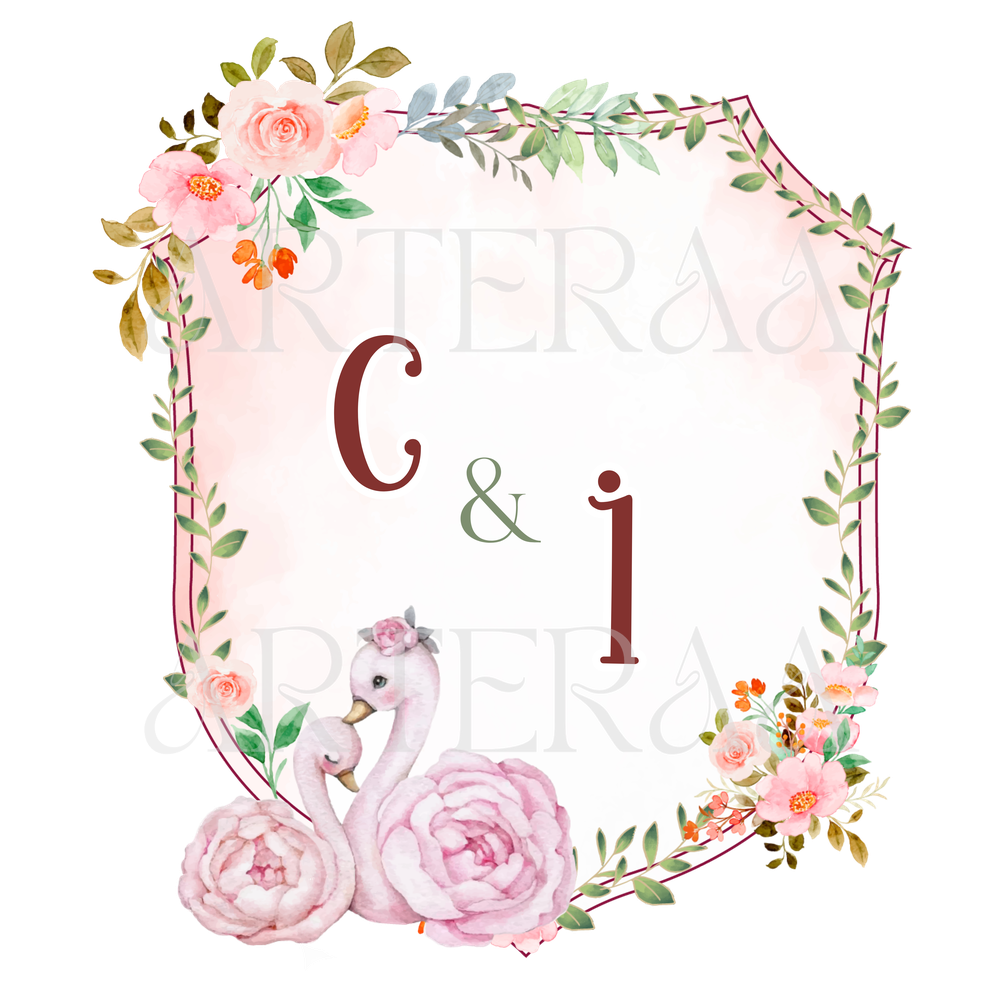 Floral Swan Monogram – Gentle pastel pinks, floral frame, and a pair of swans for an elegant romantic vibe.