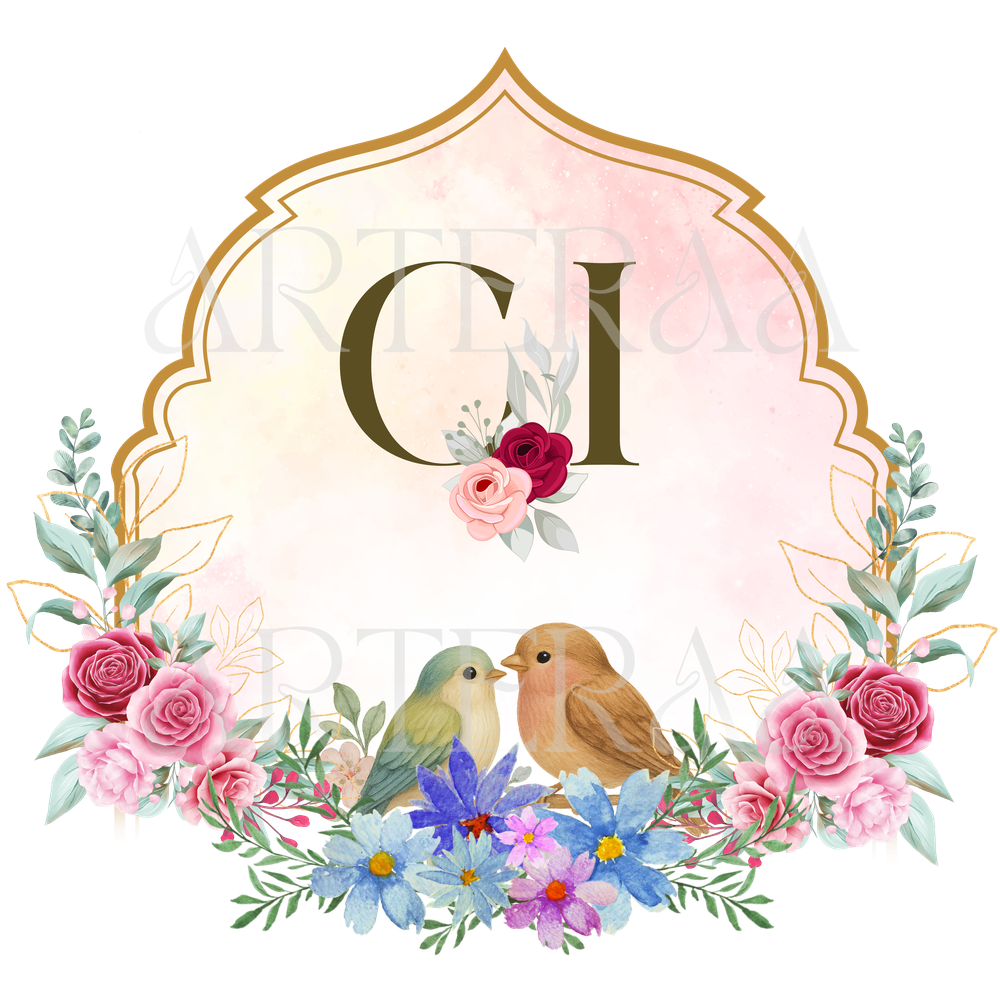 A: You will receive 5 high-resolution PNG files with transparent backgrounds featuring the selected couple initials (e.g., CI). The files are ready to use in digital or printed wedding materials.