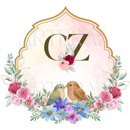 A: You will receive 5 high-resolution PNG files with transparent backgrounds featuring the selected couple initials (e.g., CZ). The files are ready to use in digital or printed wedding materials.