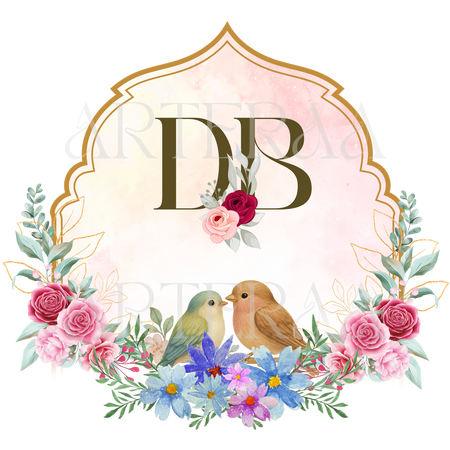 A: You will receive 5 high-resolution PNG files with transparent backgrounds featuring the selected couple initials (e.g., DB). The files are ready to use in digital or printed wedding materials.