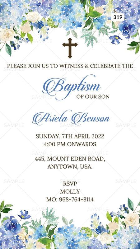 Digital Baptism Invitation of Western Family in English Language With Floral Theme Canva Editable Template Design No. 319