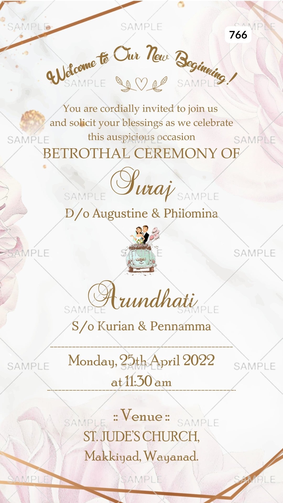 Digital Betrothal Ceremony Invitation Of Christian Family In English Language With Texture Floral Theme Canva Editable Template design no - 766