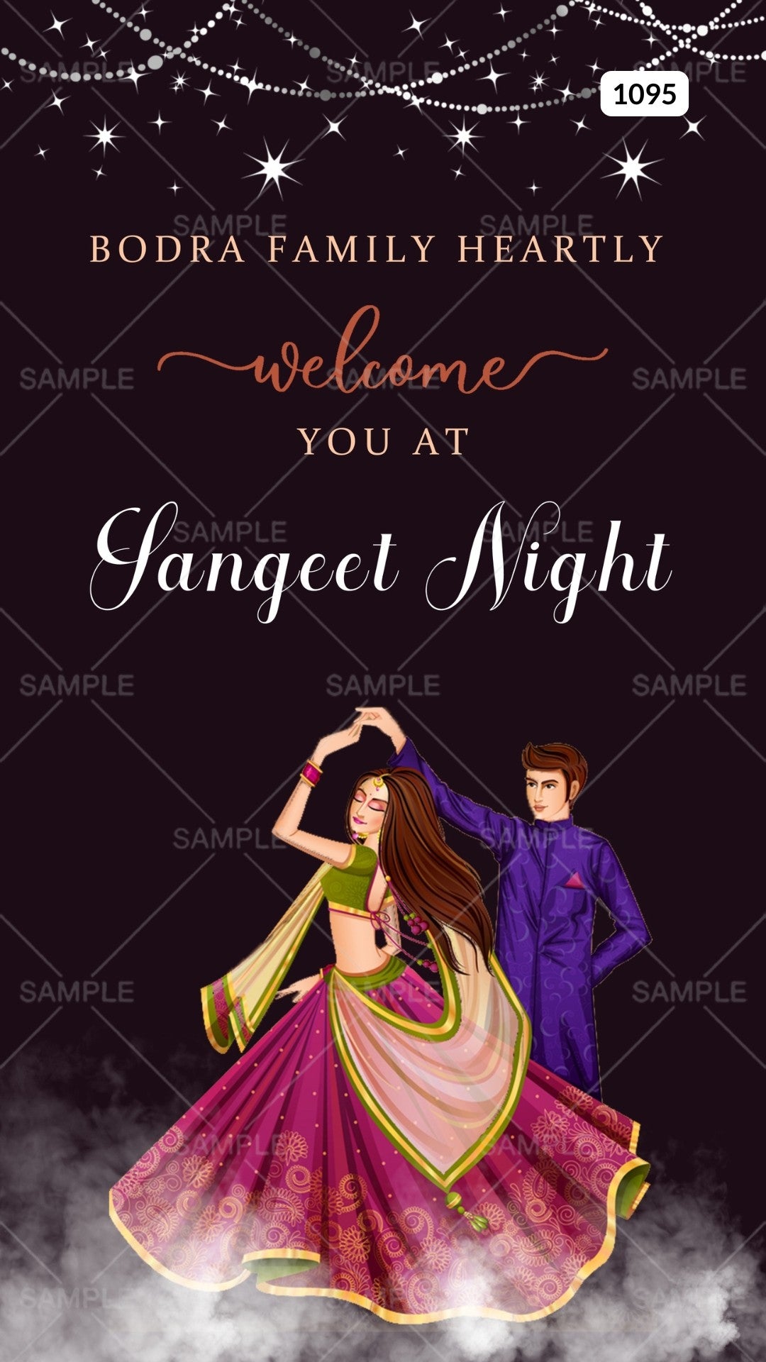 Digital Sangeet Night Invitation of Indians in English Language With Enchanting Theme Canva Editable Template Design No. 1095