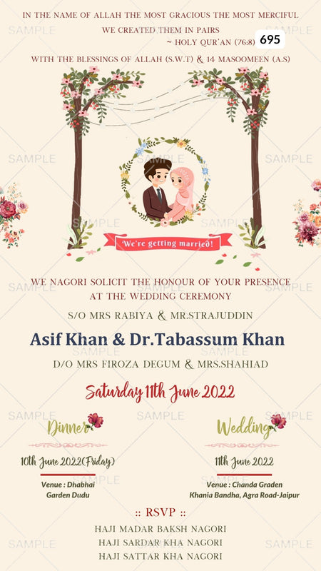 Digital Wedding Ceremony Invitation Of North Indian Family In English Language With Pastel Theme Canva Editable Template design no - 695