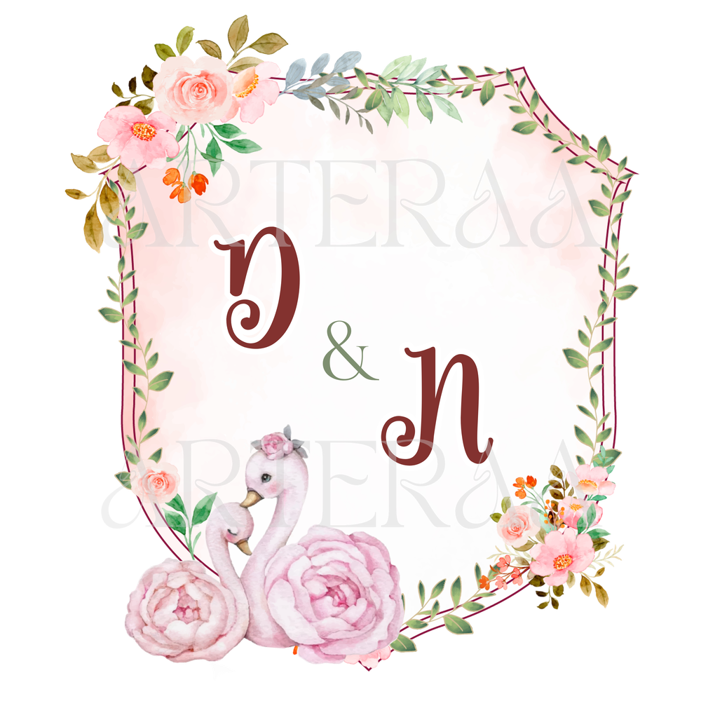 Floral Swan Monogram – Gentle pastel pinks, floral frame, and a pair of swans for an elegant romantic vibe.