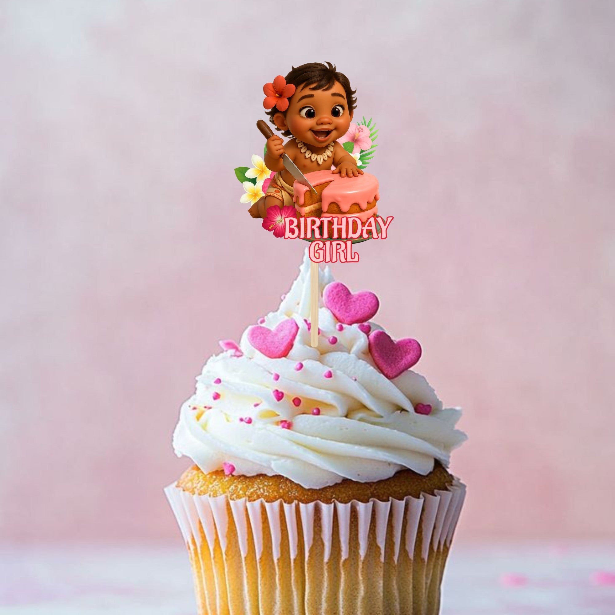 ⢠A customizable Baby Moana design with options for "Birthday Girl" and a personalized name and age