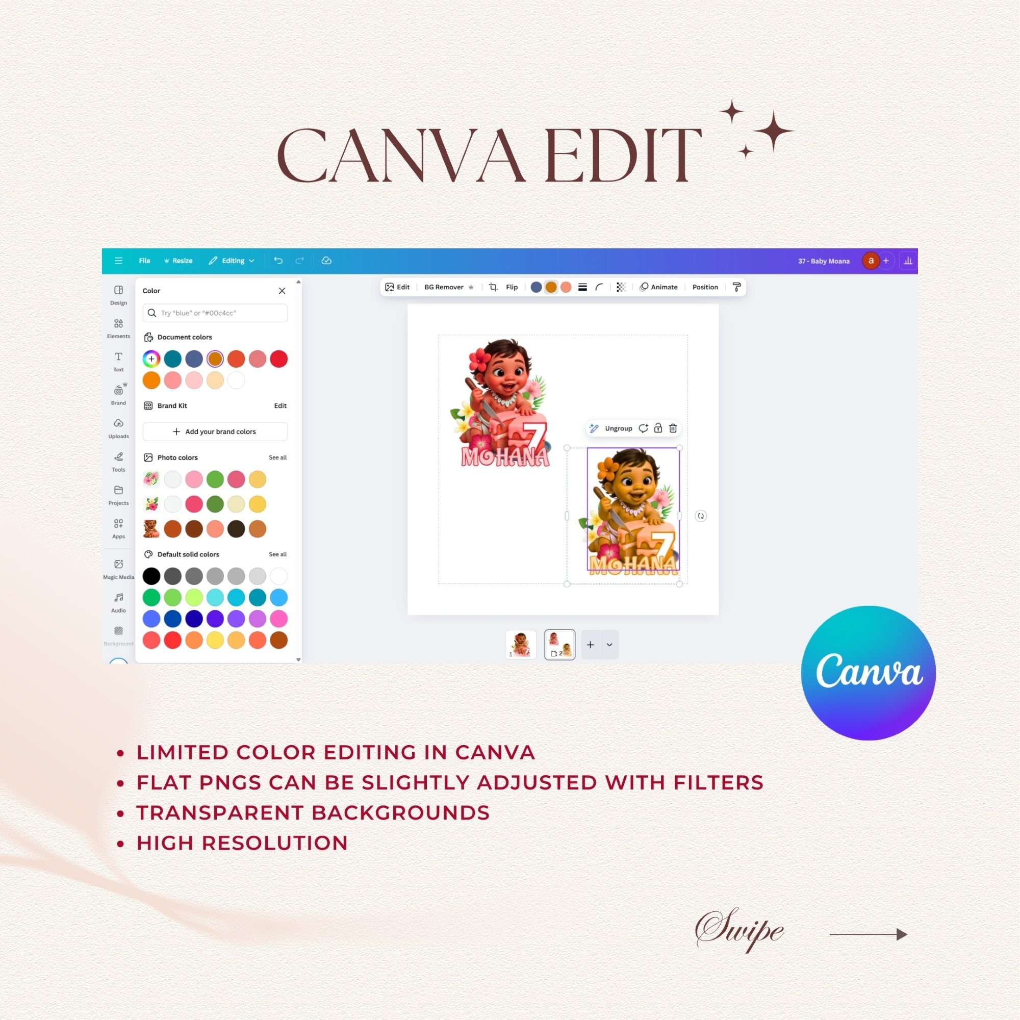 šŗ Dive into a tropical adventure with our Editable Baby Moana PNG! š
