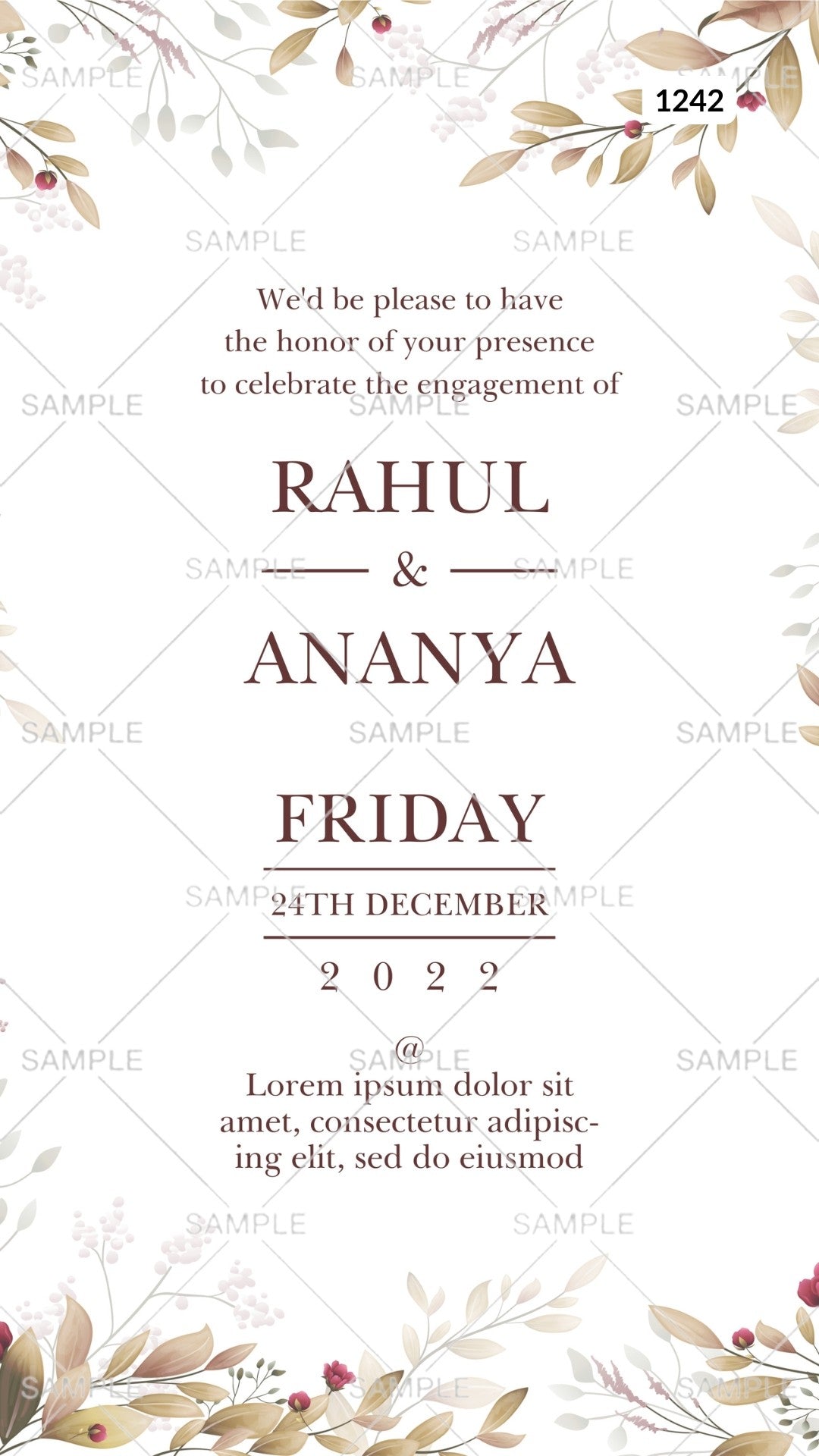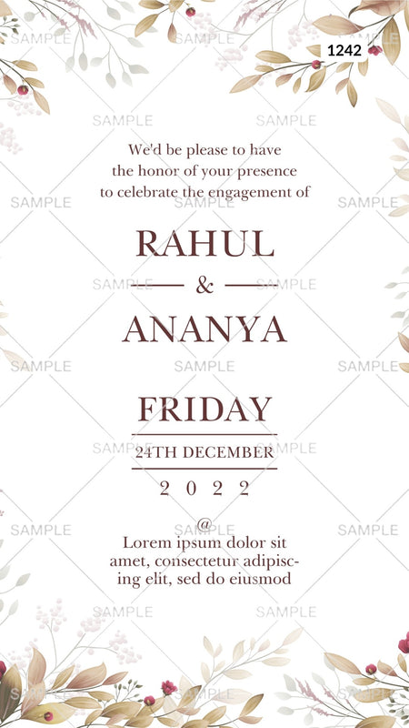 Engagement ceremony invitation card Canva Editable Template in english language with flowers as artistic leaves theme design 1242
