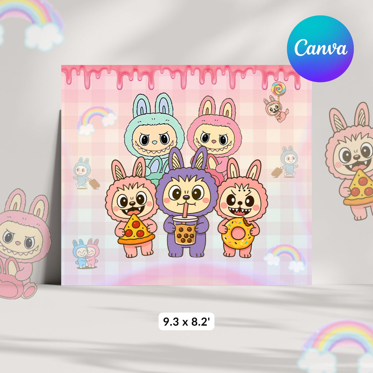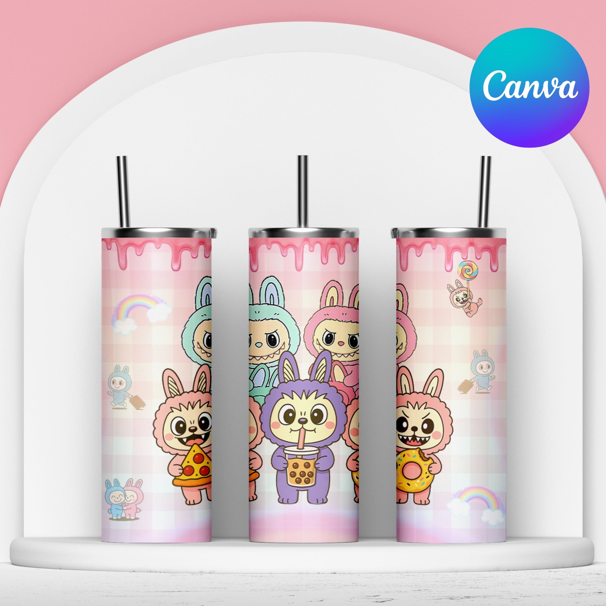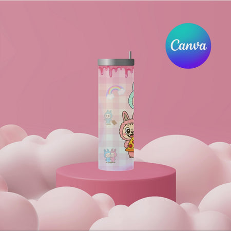 This adorable and unique design features a collection of cute, cartoon characters enjoying their favorite treats like pizza, boba, and donuts. With a fun checkered background, this high-quality PNG wrap is perfect for creating a custom 20oz skinny tumbler that's sure to bring a smile to anyone's face.