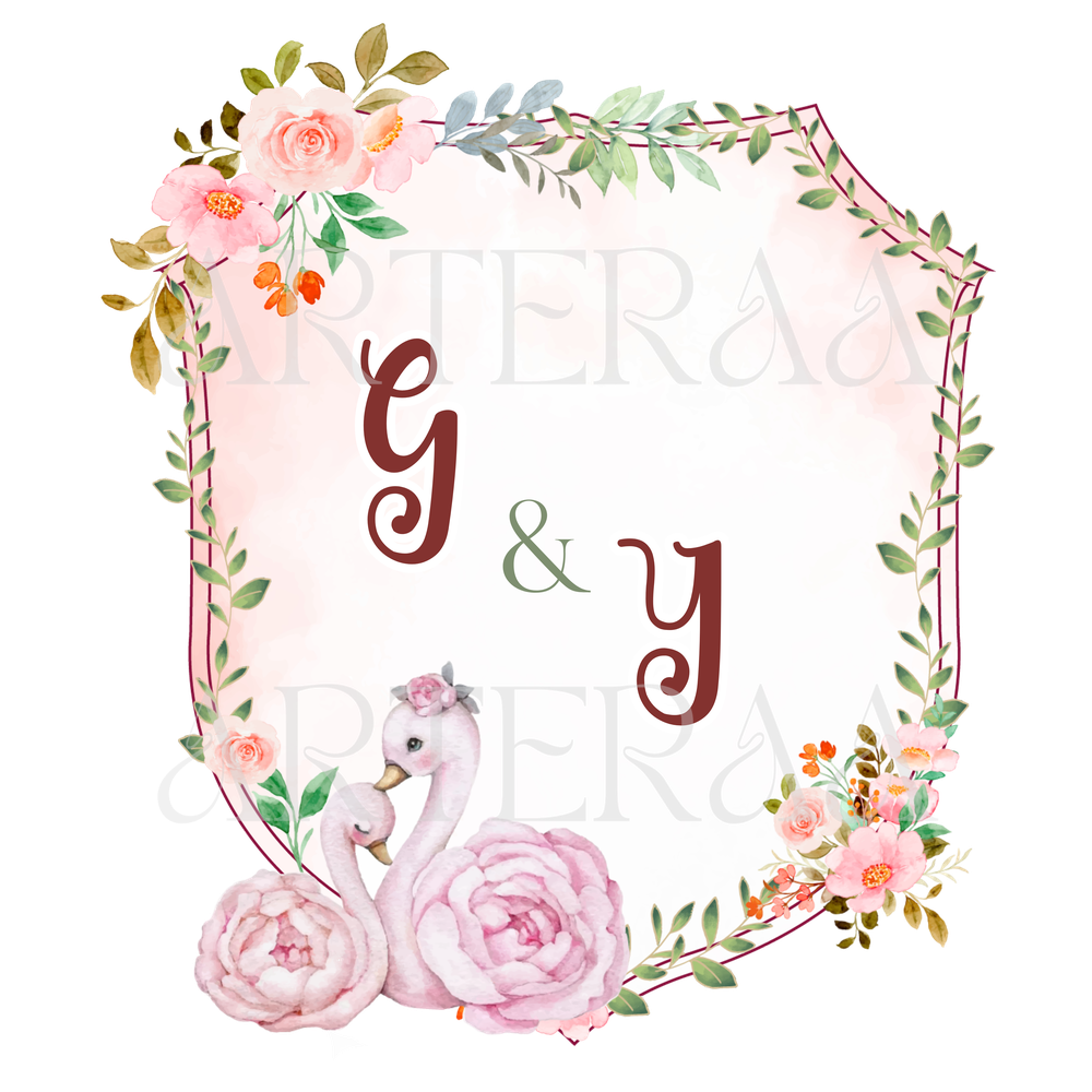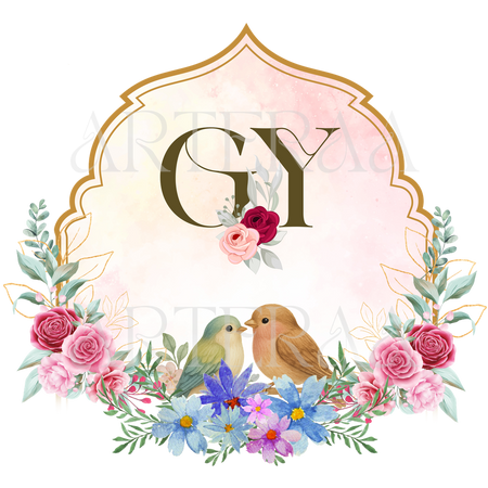 A: You will receive 5 high-resolution PNG files with transparent backgrounds featuring the selected couple initials (e.g., GY). The files are ready to use in digital or printed wedding materials.