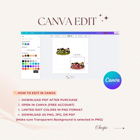 • Reselling or sharing the PNG file, Canva link, or Drive link