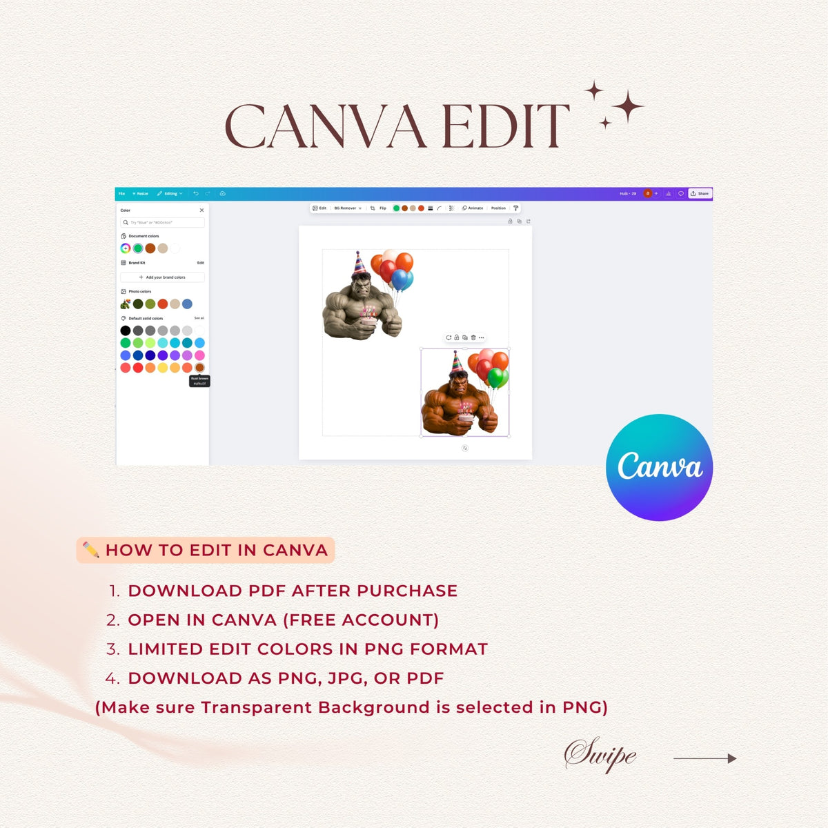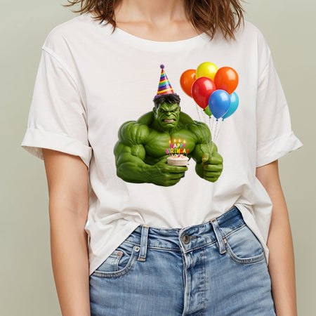 This powerful digital design features a cute and stylized Hulk holding a birthday cupcake and balloons, perfect for creating custom birthday shirts, invitations, and party decorations. Ideal for fans of superheroes and action-packed celebrations, this high-quality PNG is a must-have for a truly heroic birthday bash!
