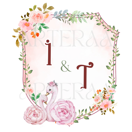 Floral Swan Monogram – Gentle pastel pinks, floral frame, and a pair of swans for an elegant romantic vibe.