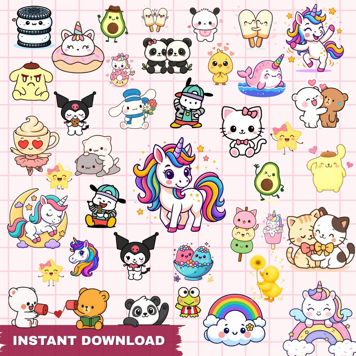 Kawaii PNG Clipart Bundle | 99+ Cute Anime Style Designs | Unicorn, Panda & Cat | Instant Download - C41