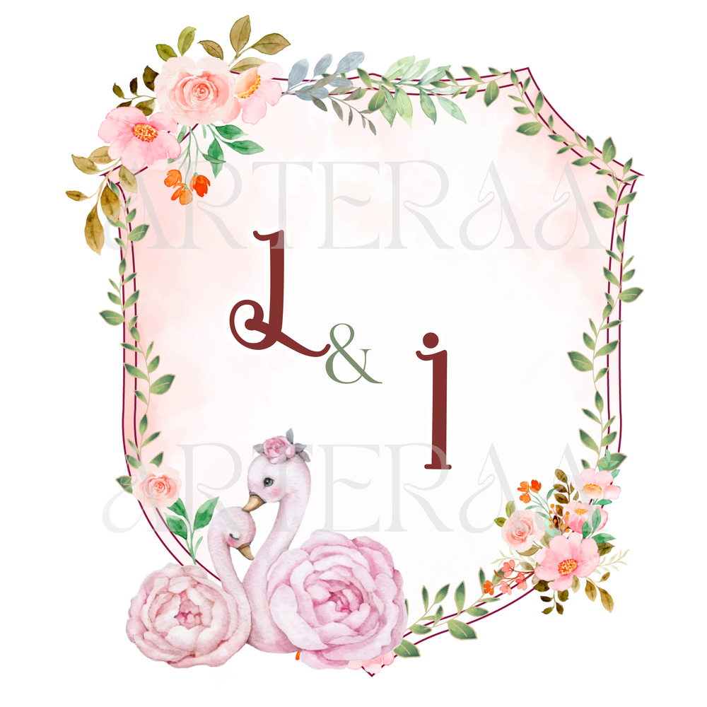Floral Swan Monogram – Gentle pastel pinks, floral frame, and a pair of swans for an elegant romantic vibe.