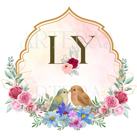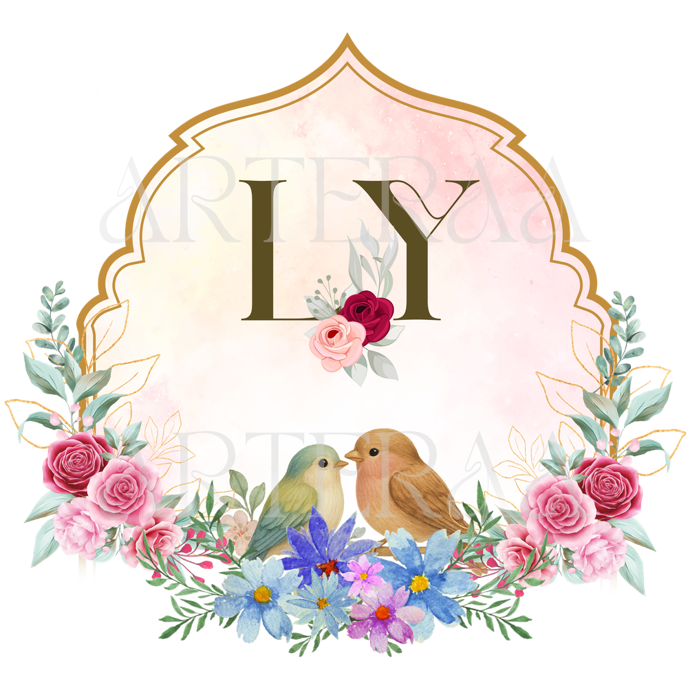 A: You will receive 5 high-resolution PNG files with transparent backgrounds featuring the selected couple initials (e.g., LY). The files are ready to use in digital or printed wedding materials.