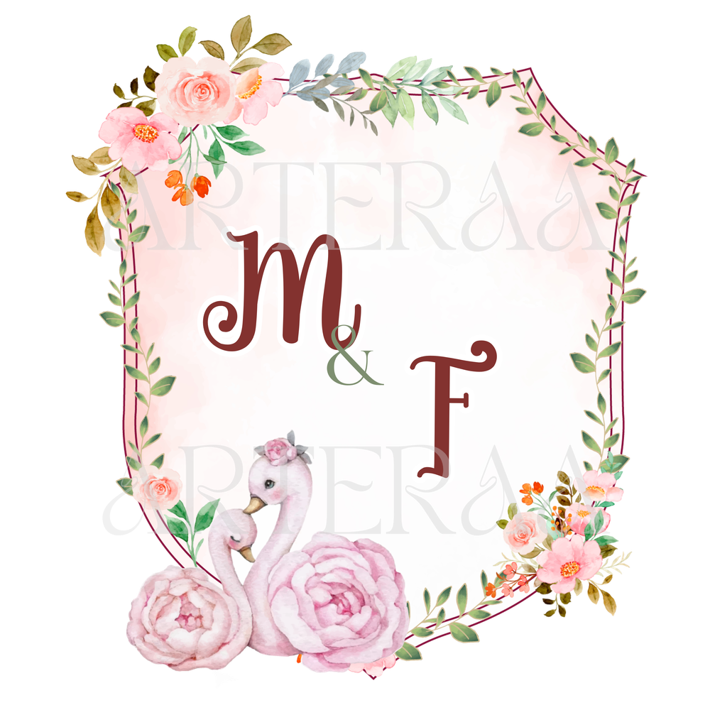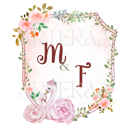 Floral Swan Monogram – Gentle pastel pinks, floral frame, and a pair of swans for an elegant romantic vibe.