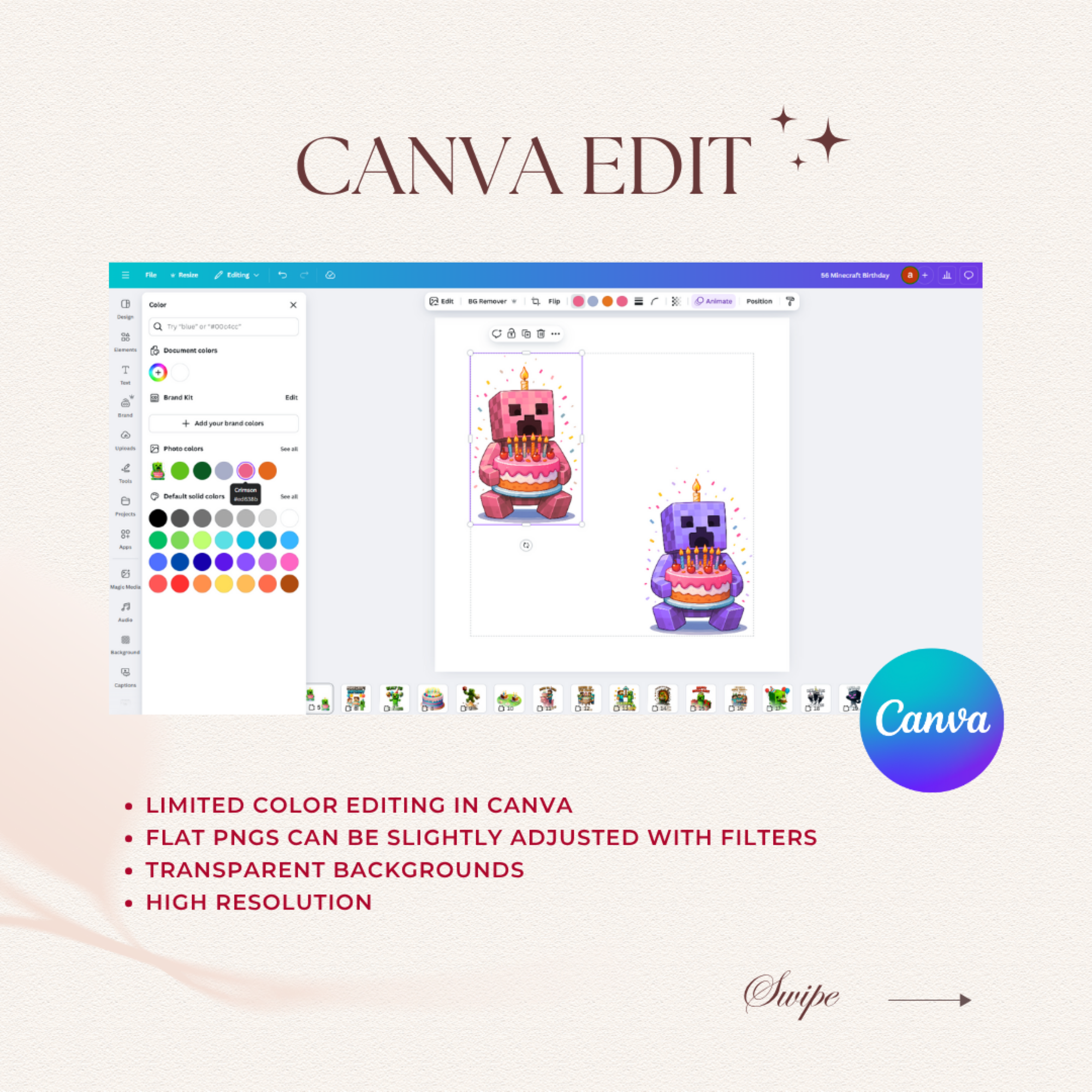 • Reselling or sharing the PNG files, Canva link, or Drive link