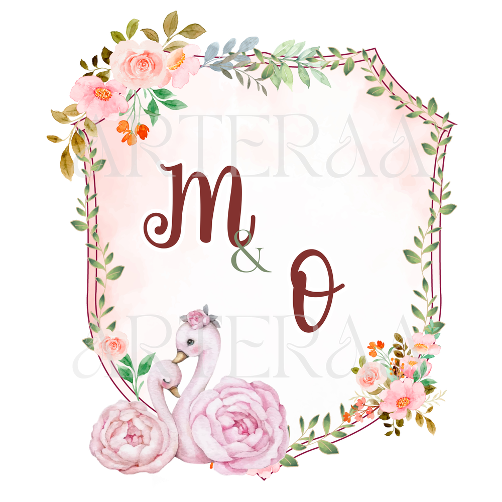 Floral Swan Monogram – Gentle pastel pinks, floral frame, and a pair of swans for an elegant romantic vibe.