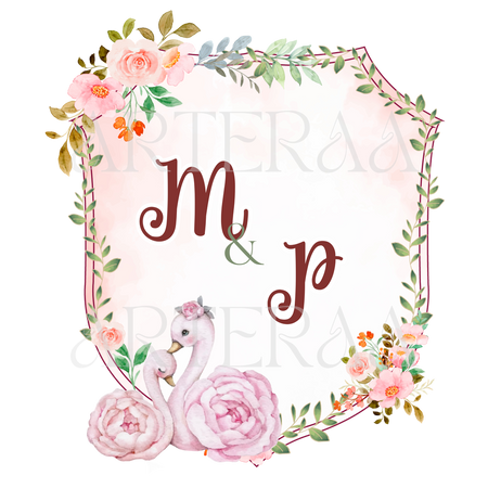 Floral Swan Monogram – Gentle pastel pinks, floral frame, and a pair of swans for an elegant romantic vibe.