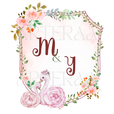 Floral Swan Monogram – Gentle pastel pinks, floral frame, and a pair of swans for an elegant romantic vibe.