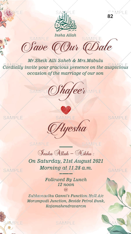 Nikah ceremony invitation card Canva Editable Template of Muslim family in english language with Floral theme design 82