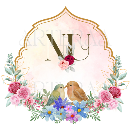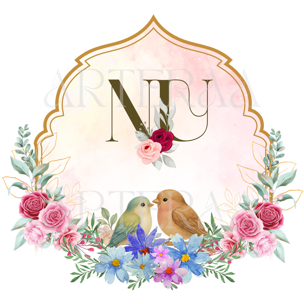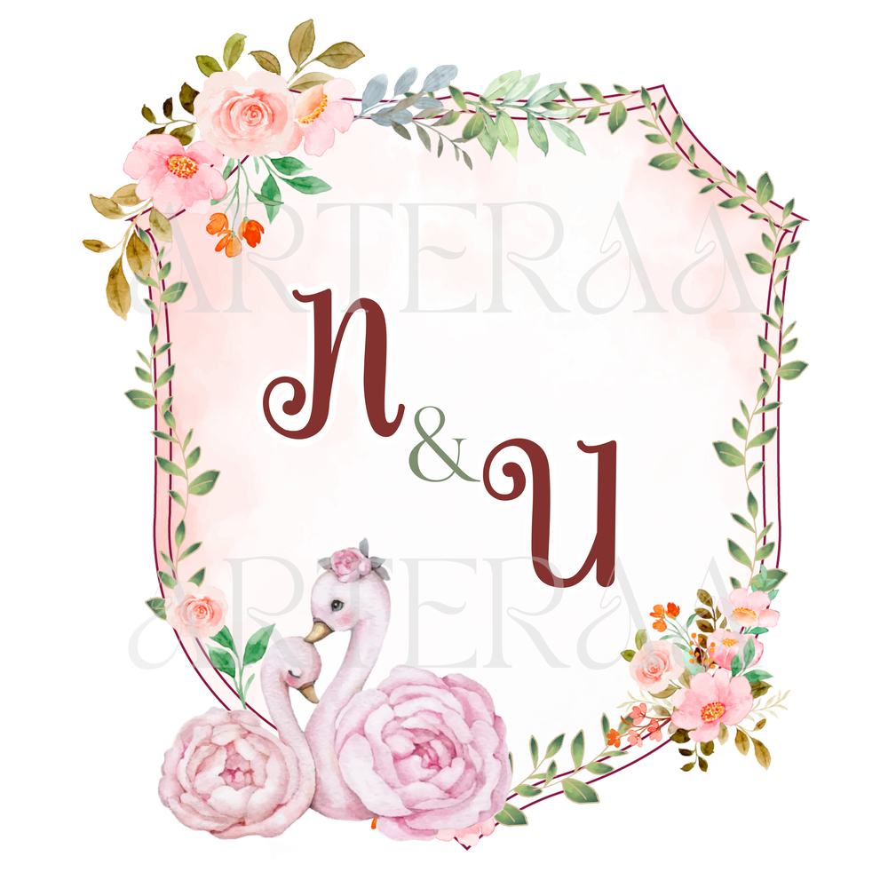A: You will receive 5 high-resolution PNG files with transparent backgrounds featuring the selected couple initials (e.g., NU). The files are ready to use in digital or printed wedding materials.