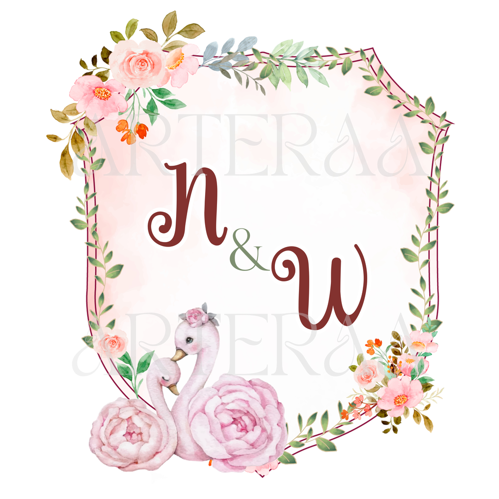 Floral Swan Monogram – Gentle pastel pinks, floral frame, and a pair of swans for an elegant romantic vibe.