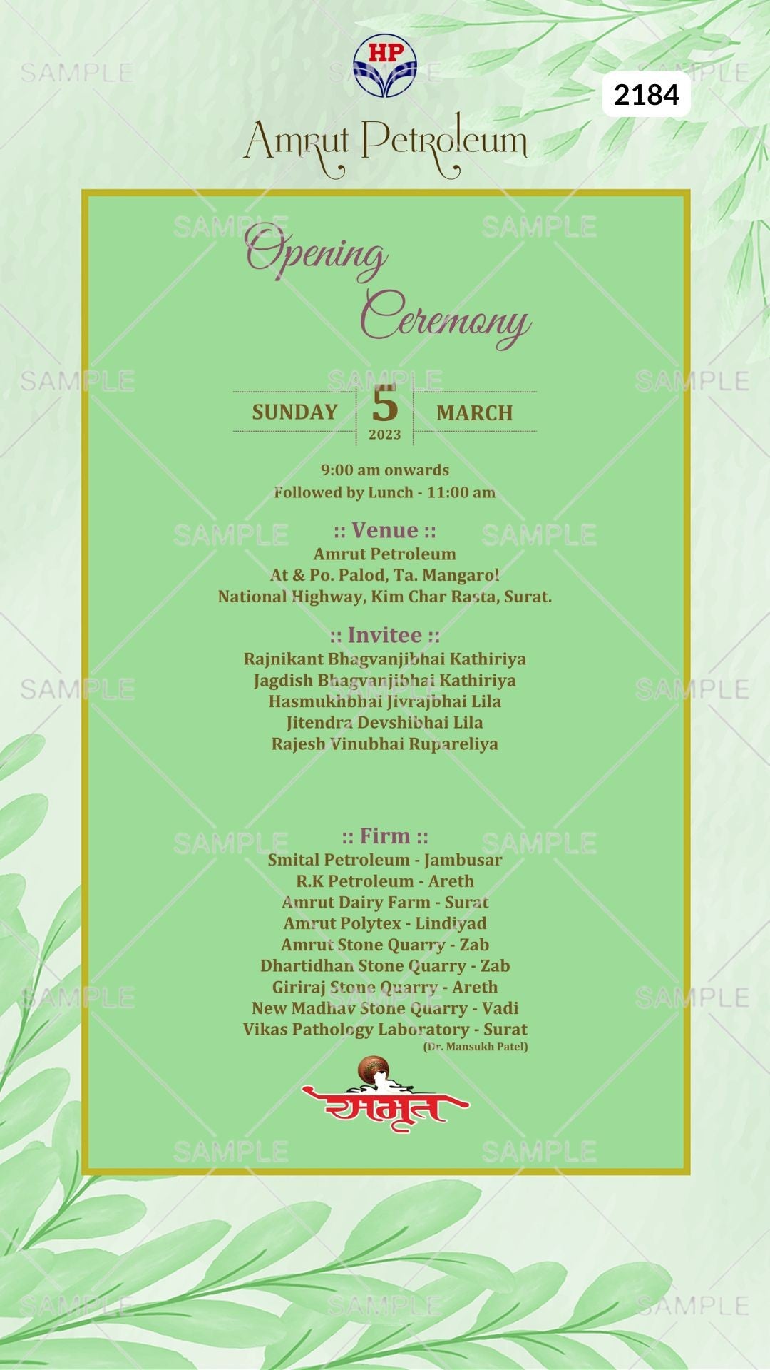 Opening invitation card Canva Editable Template in english language with green leaves as minimalistic theme design 2184