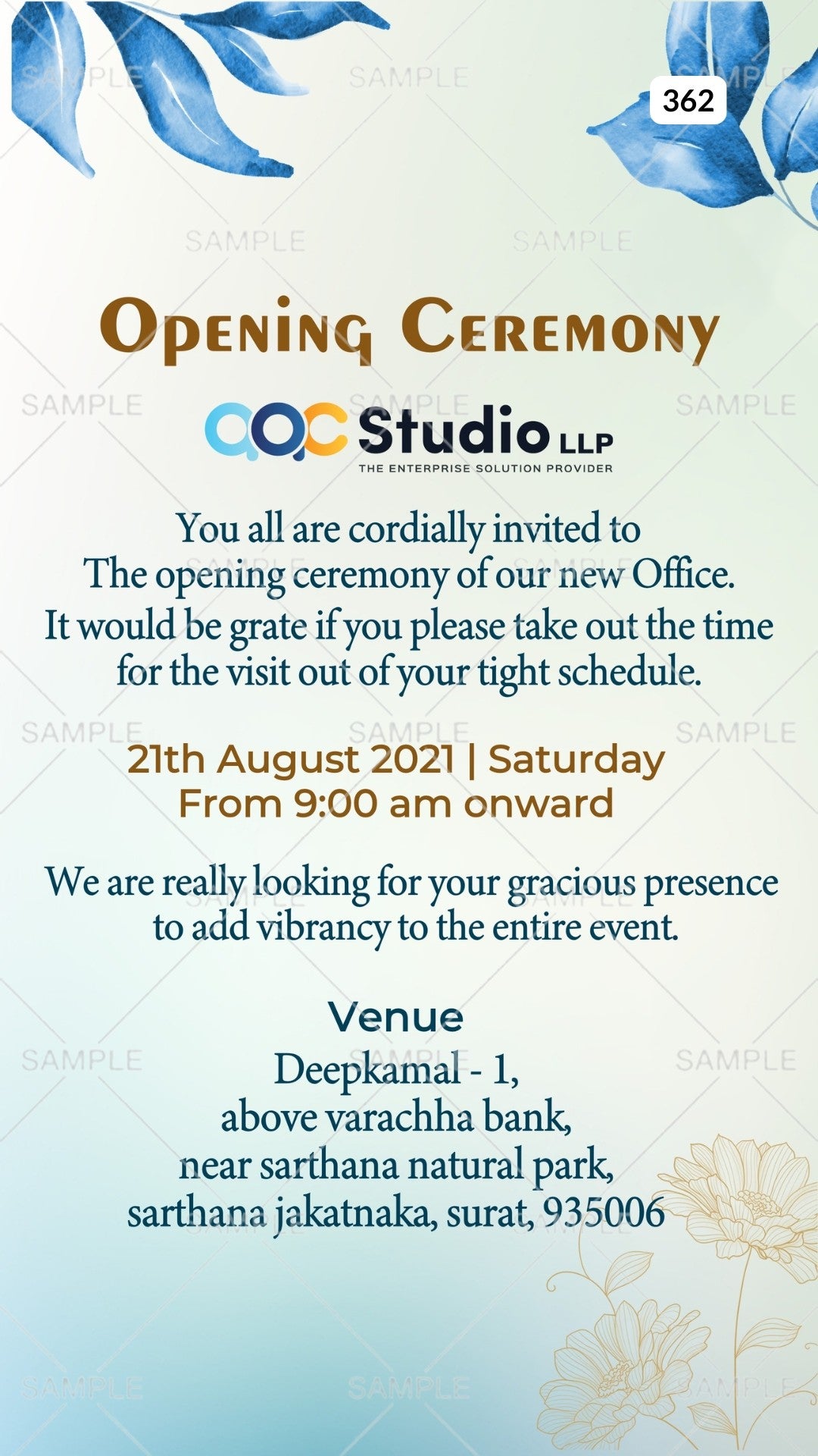 Opening invitation card Canva Editable Template in english language with levaes as minimalistic theme design 362
