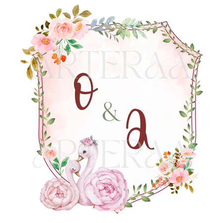 Floral Swan Monogram – Gentle pastel pinks, floral frame, and a pair of swans for an elegant romantic vibe.