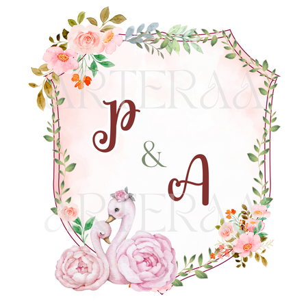 Floral Swan Monogram – Gentle pastel pinks, floral frame, and a pair of swans for an elegant romantic vibe.