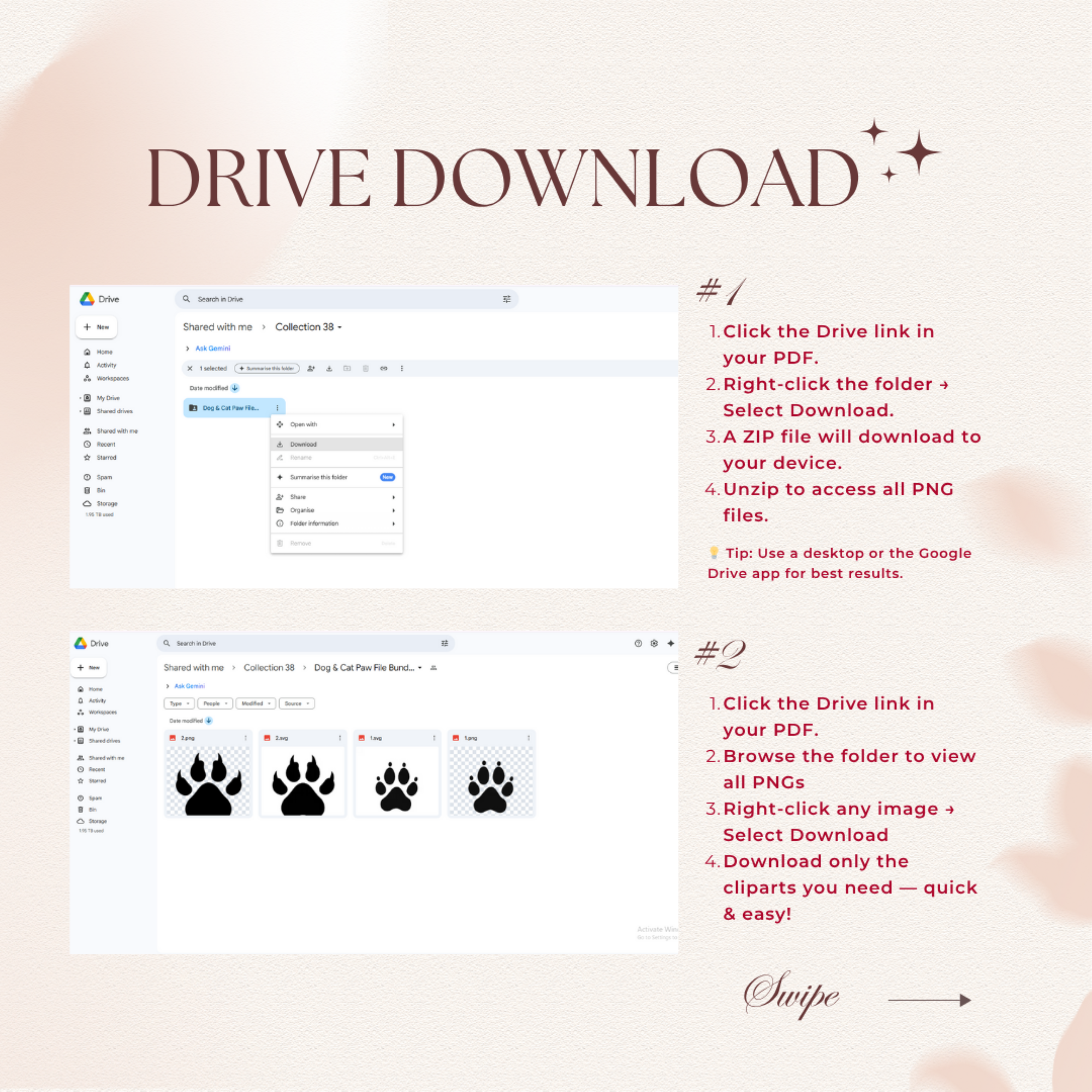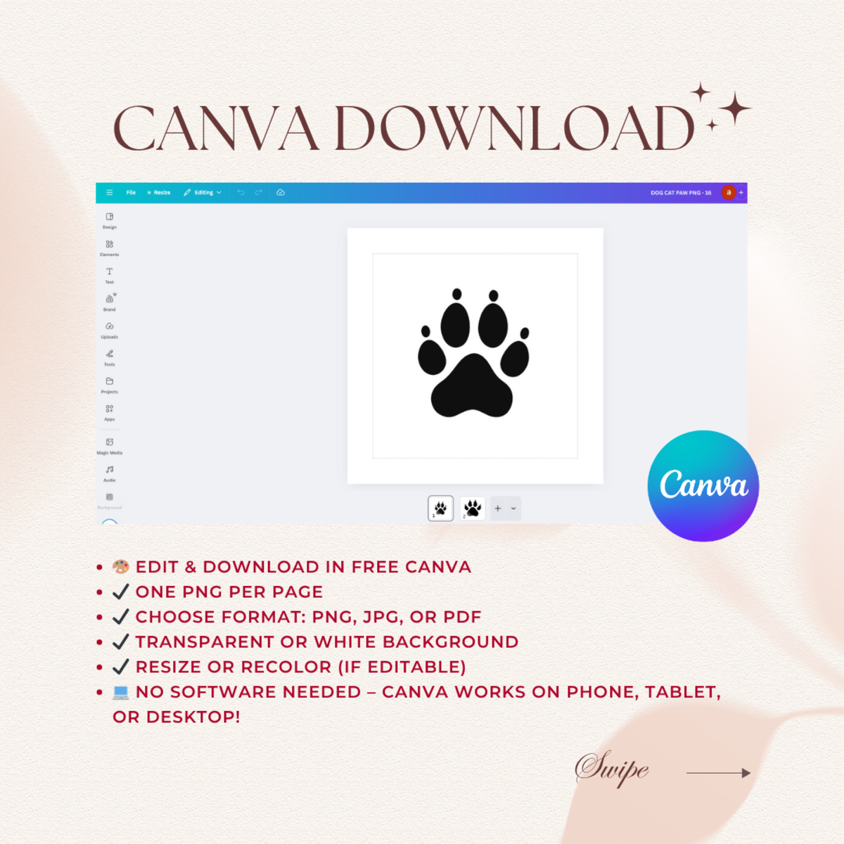This versatile digital collection includes 2 high-quality paw prints, one for a dog and one for a cat. Perfect for pet lovers and crafters, these designs are ready to be used on a wide variety of projects, from custom apparel to decals and home decor. Celebrate the special bond you have with your pets with these adorable and timeless graphics.