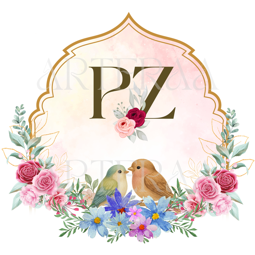 A: You will receive 5 high-resolution PNG files with transparent backgrounds featuring the selected couple initials (e.g., PZ). The files are ready to use in digital or printed wedding materials.