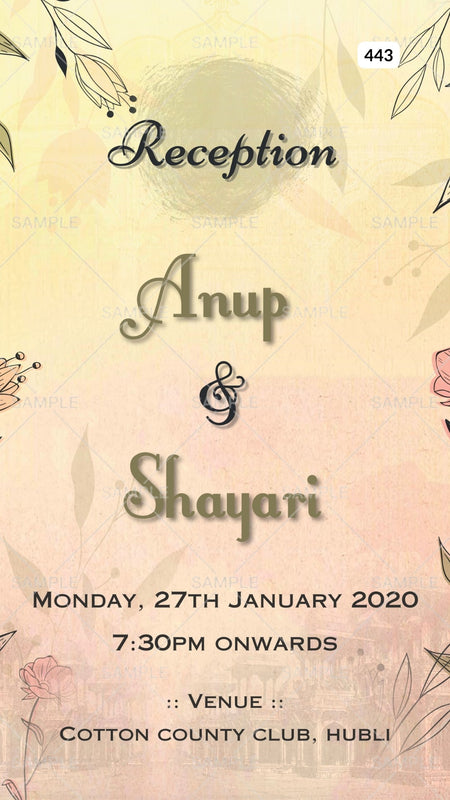 The minimalistic Theme of the Reception Party digital invitation Canva Editable is in yellow, pink background color. This wedding reception ceremony e-invite editable template is available in the English language. This marriage reception invitation includes elements such as flowers, and leaves. This card design can be customized online for free in Canva, and you can edit the couple's name, date, time, function name and venue. You can also share your card easily via WhatsApp or email.