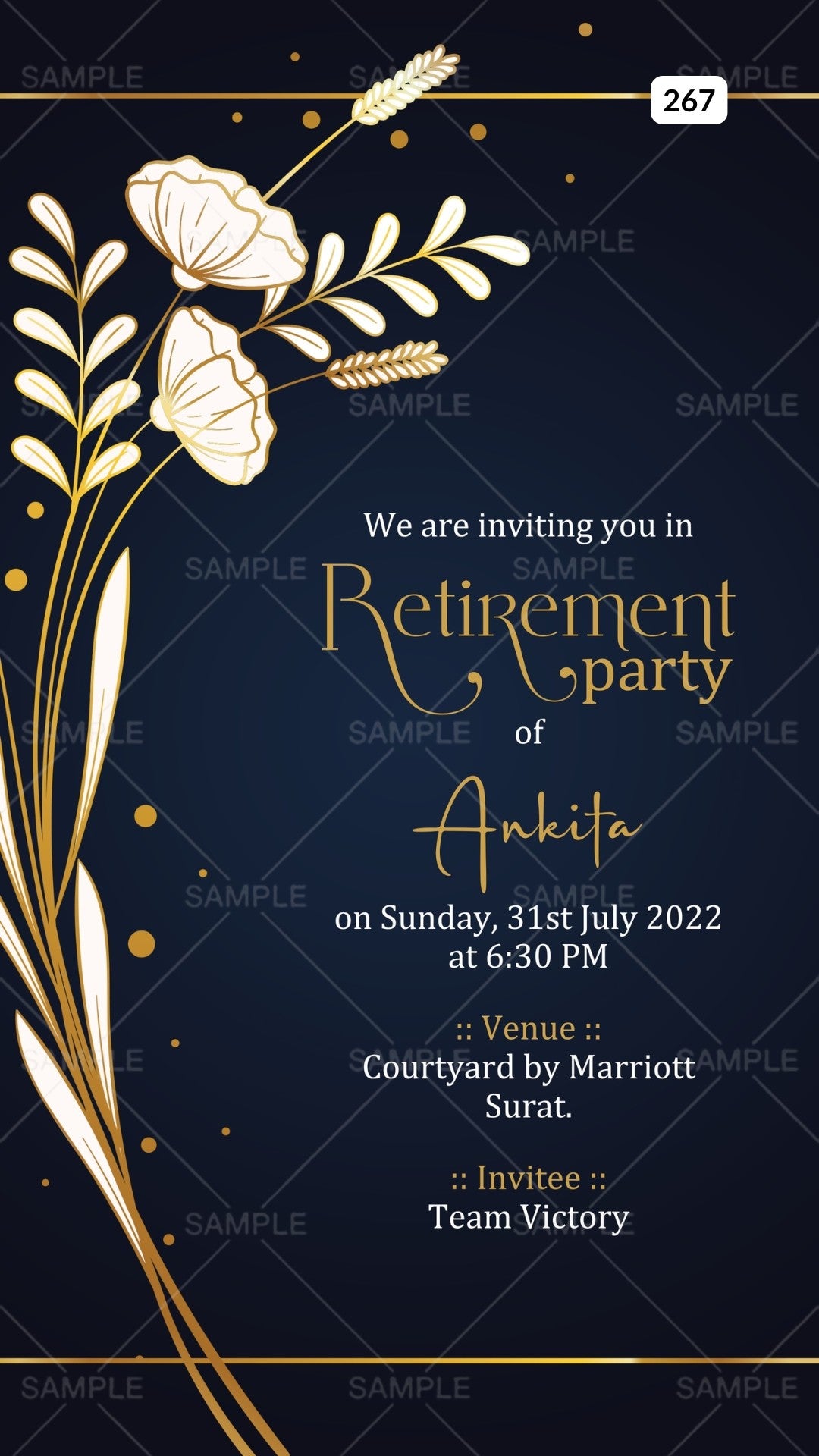 Retirement Party invitation card Canva Editable Template in english language with frame, flowers as glittery theme design 267